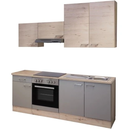 Die 210 cm breite Küchenzeile besteht aus (HxBxT):