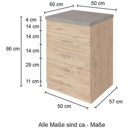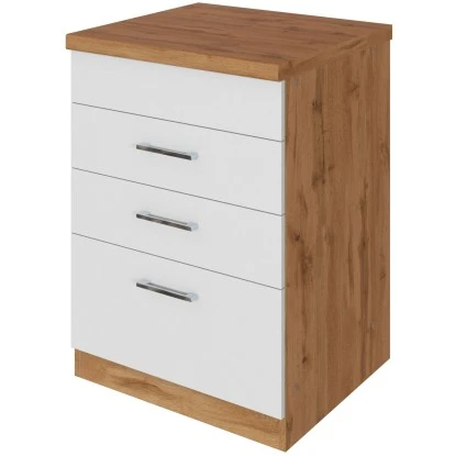 Der Held Möbel Kochfeldumbauschrank Sorrento misst B x H x T: 60 cm x 85 cm x 60 cm, 2 Schubkästen, 1 Auszug, Metallgriff
