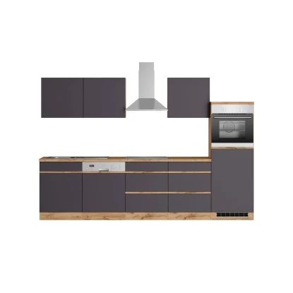 Die Küchenzeile Turin von Held Möbel mit hochwertigen MDF-Fronten begeistert optisch durch die klaren Linien sowie die zweifarbige Gestaltung. Da die Schränke in zwei Farbkombinationen verfügbar sind, können Sie die Küche im Mix-and-Match Stil erweitern. Zusätzliche Akzente werden durch die 38 mm starke Arbeitsplatte im Beton Dekor gesetzt.