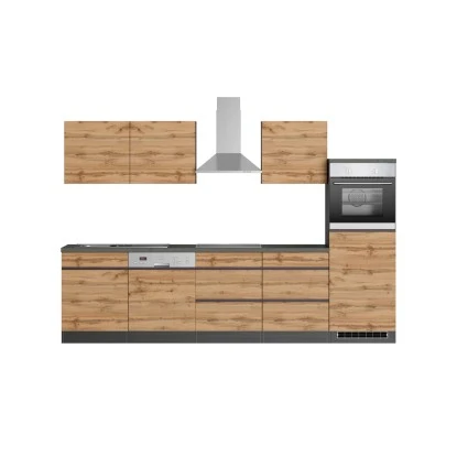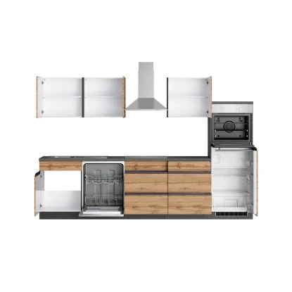 Die Küchenzeile Turin von Held Möbel mit hochwertigen MDF-Fronten begeistert optisch durch die klaren Linien sowie die zweifarbige Gestaltung. Da die Schränke in zwei Farbkombinationen verfügbar sind, können Sie die Küche im Mix-and-Match Stil erweitern. Zusätzliche Akzente werden durch die 38 mm starke Arbeitsplatte im Beton Dekor gesetzt.