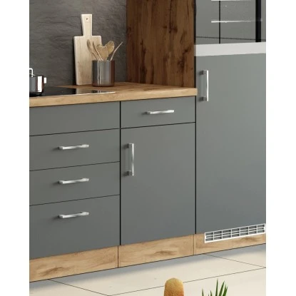 Die Küchenserie Sorrento besticht durch ihre 4 absolut trendstarken Dekorkombinationen, in denen immer das ausdrucksstarke Eichedekor eine entscheidende Rolle spielt. Durch eine Vielzahl an Zeilen- und Winkelkombinationen, die außerdem durch eine große Auswahl an Ergänzungsmöbeln komplettiert werden, ergibt sich ein breites Spektrum an Einrichtungsmöglichkeiten. Möchten Sie Ihren Backofen lieber autark in einem Hochschrank untergebracht haben? Benötigen Sie einen großzügigen Kühlschrank mit integriertem Gefrierschrank? Lagern Sie Ihre Vorräte gern in Auszügen und Apothekerschränken? Alle Schränke sind flexibel aufzustellen und die Türen sind wahlweise rechts oder links montierbar. Entscheiden Sie selbst- hier bleiben keine Wünsche offen.