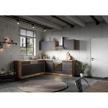 Die Winkelküche Turin von Held Möbel mit hochwertigen MDF-Fronten begeistert optisch durch die klaren Linien sowie die zweifarbige Gestaltung. Da die Schränke in zwei Farbkombinationen verfügbar sind, können Sie die Küche im Mix-and-Match Stil erweitern. Zusätzliche Akzente werden durch die 38 mm starke Arbeitsplatte im Beton Dekor gesetzt.