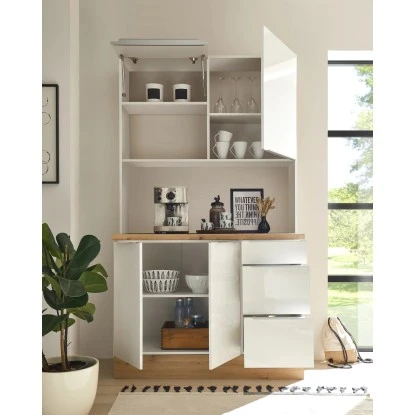 Das Respekta Buffet zu Küchenzeile Marleen ist in verschiedenen Farben erhältlich und schafft durch den Materialmix von Elementen in Holz- und Griffleisten in Aluminiumoptik ein modernes Design. Die Schränke bieten Ihnen viel Stauraum und schließen dank der Soft Close Funktion besonders geräuscharm. Unebenheiten im Boden gleichen Sie mit den höhenverstellbaren Füßen ganz einfach aus.
