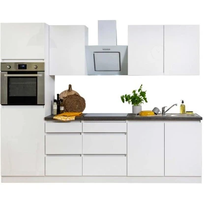 Sie wollen Ihrer Küche zu neuem Glanz verhelfen, haben aber erst kürzlich neue Elektrogeräte gekauft oder finden einfach nicht die richtige Küchenzeile mit bereits integrierten Elektrogeräten? Dann ist die grifflose Respekta Premium Küchenzeile ohne E-Geräte LBGLRP270HWW genau das Richtige für Sie. Die weißen Hochglanzfronten des Leerblocks verleihen Ihrer Küche ein modernes Design und zudem wirkt Ihre Küche durch die grifflosen Fronten ruhig und elegant. Die geräumigen Schränke sorgen mit einer komfortablen Soft-Close Funktion in dieser perfekt abgerundeten Küchenzeile für vielfältige Stauraummöglichkeiten für Vorräte und Küchenutensilien.