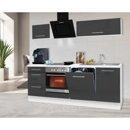 Respekta Premium Küchenzeile 220 Cm Grau Hochglanz-Weiß