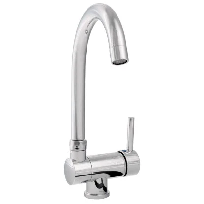 Die Armatur Gloria passt mit ihrem modernen Design in die stylische Küche. Durch den umklappbarem Auslauf, kann die Armatur direkt unter einem Fenster montiert werden.