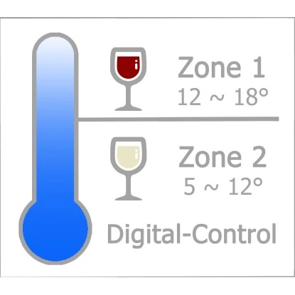– Zwei-Zonen-Temperaturregelung: 5 bis 12 °C und 12 bis 18 °C