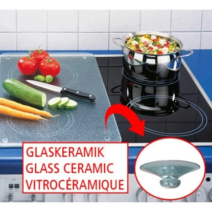 Die Abdeckplatten schützen den Herd zuverlässig. Ob Glaskeramik-, Elektro- oder Gasherd die acht rutschfesten Spezialfüße gewährleisten stets den nötigen Abstand. Die Herdabdeckplatten eignen sich auch zum Abstellen von warmen Töpfen und Pfannen. Ebenso können sie als zusätzliche Erweiterung der Arbeitsfläche zur Vorbereitung von Speisen dienen. Ihre kratzfeste, porenfreie Oberfläche wird höchsten hygienischen Ansprüchen gerecht, da sie das Einnisten von Bakterien und Gerüchen verhindert. Die Platten sind extrem robust und nahezu unzerbrechlich (schlagfest).