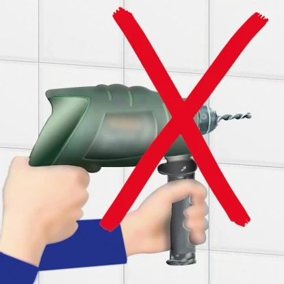 Die Befestigung ist ein Klebesystem mit extrem festem Halt auf allen glatten Oberflächen. Einfach die Schutzfolie des Spezial-Klebepads entfernen, die Halterung an der gewünschten Stelle fixieren und anpressen. Anschließend nur noch den Wandhaken einhängen. Das Klebepad ist rückstandslos wieder entfernbar.